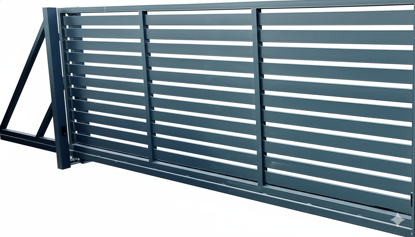 Zastosowanie systemu przesuwnego pozwala na płynne i ciche otwieranie, nie wymagając dodatkowej przestrzeni na podjeździe — idealne rozwiązanie dla nowoczesnych domów i wąskich działek. Brama może być wyposażona w napęd automatyczny, co zapewnia wygodę codziennego użytkowania.