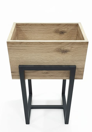 Loftowy kwietnik stojący Modeno wykonany jest z płyty meblowej oraz metalowej podstawy, kwietnik najlepiej sprawdzi się w pomieszczeniach. Może być stosowana również w przestrzeniach zadaszonych – na tarasach, balkonach czy w oranżeriach – pod warunkiem ochrony przed bezpośrednim działaniem deszczu i wilgoci.